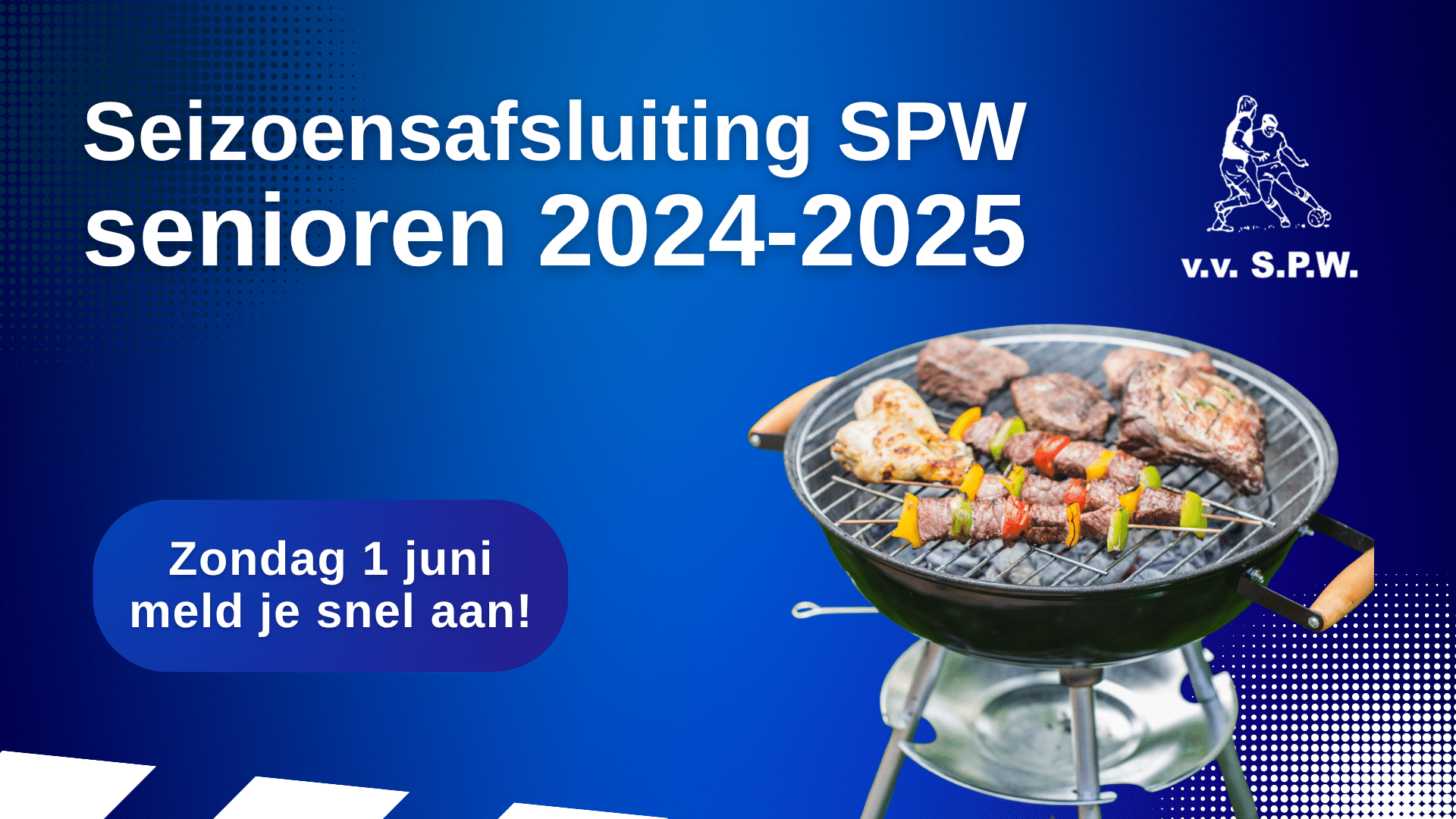 Op zondag 1 juni organiseert SPW een feestelijke afsluiting voor onze seniorenteams om het seizoen gezamenlijk af te sluiten. We nodigen alle spelers, aanhang, leiding en het kantinepersoneel van de volgende teams uit: