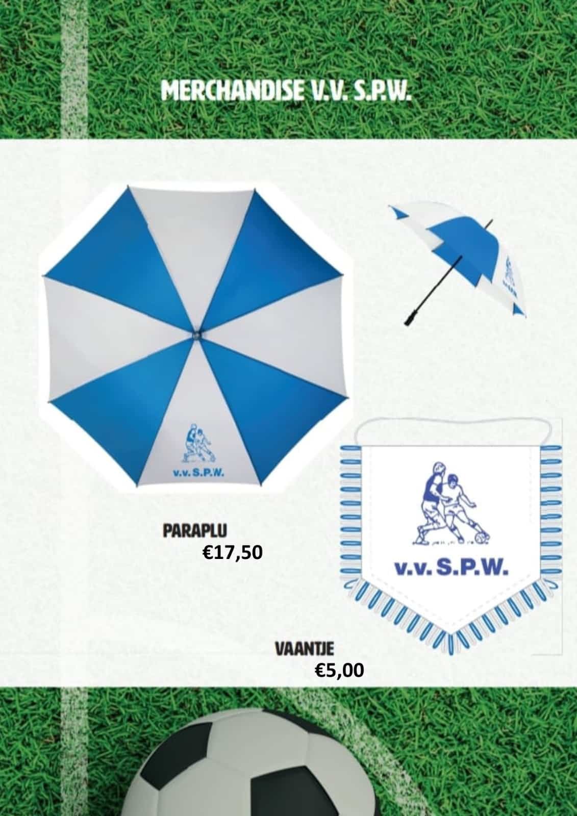 Sinds afgelopen zaterdag zijn ze weer verkrijgbaar in de kantine: de stijlvolle SPW-paraplu’s en de klassieke SPW-vaantjes!